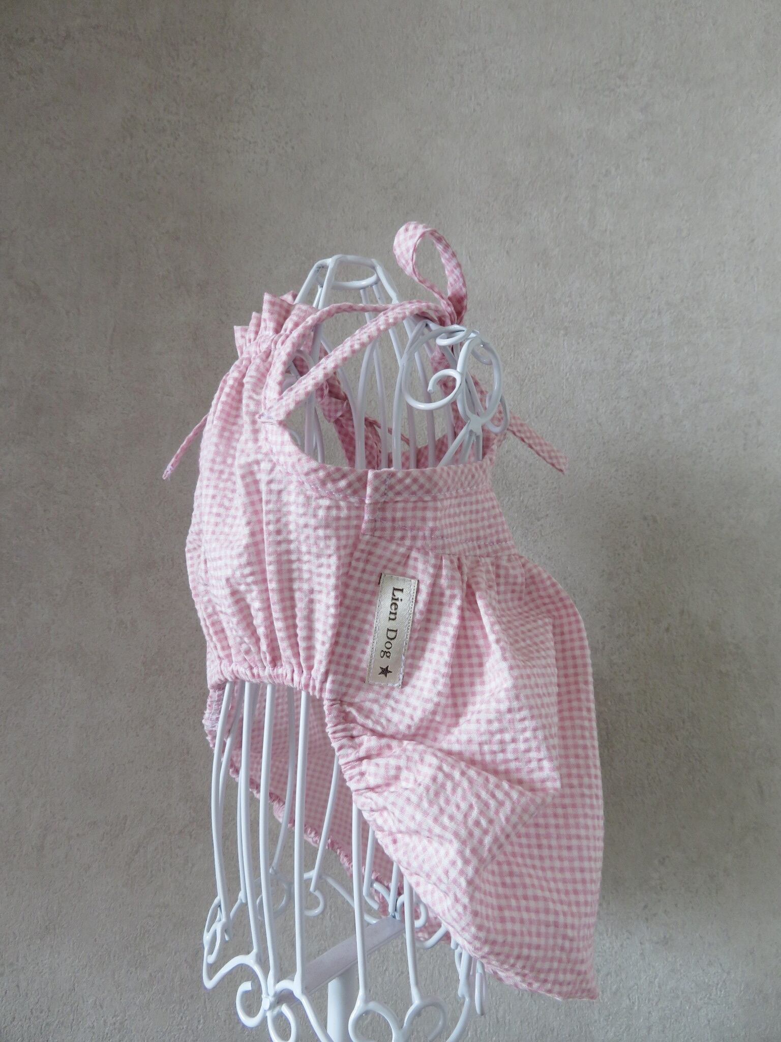 ミジンコギンガムチェックのサッカー生地で涼しい着心地で、落ち着いたピンクで優しい雰囲気のキャミソールバルーン♡