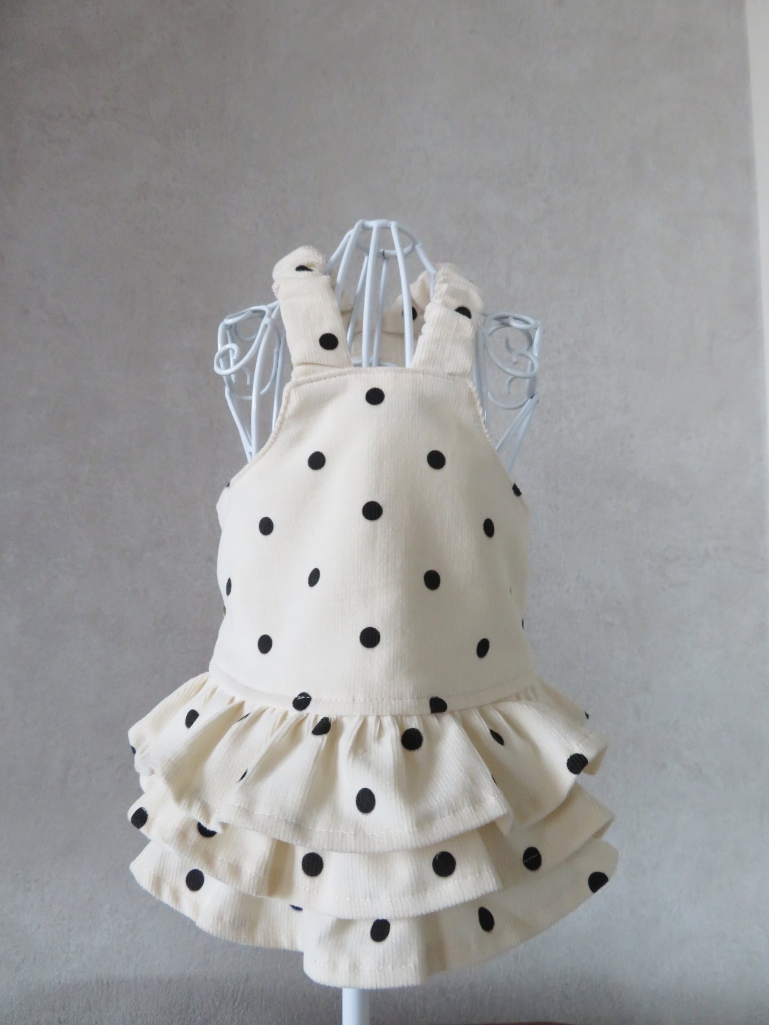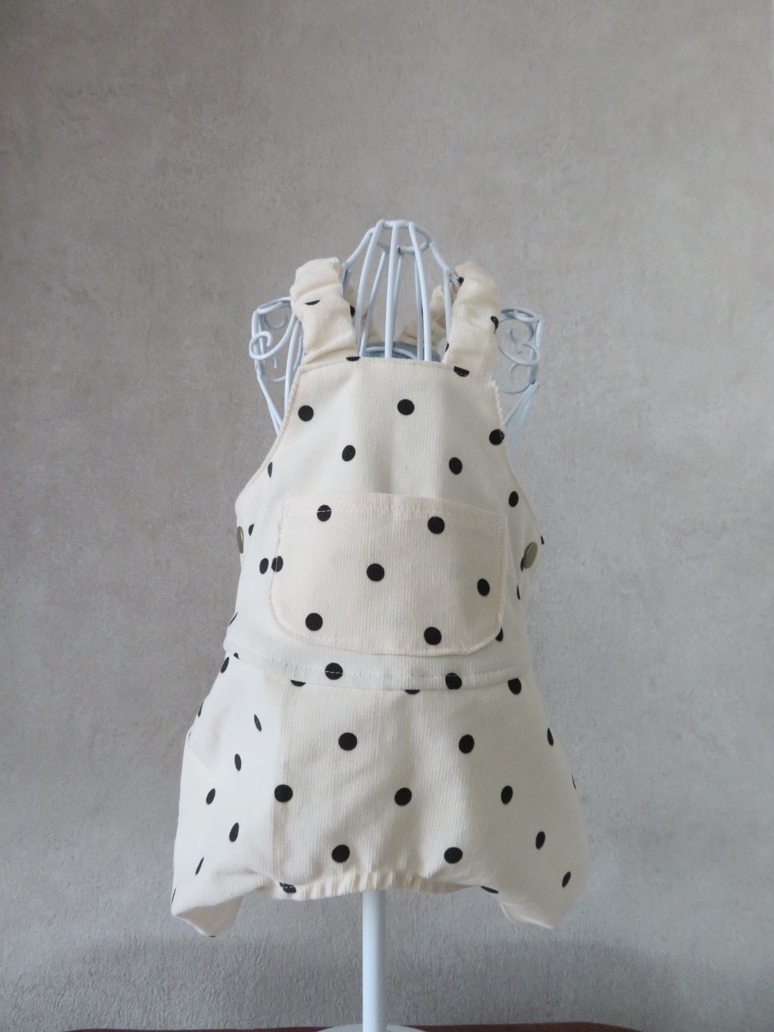 おしゃれなコーデュロイ素材に、愛らしいブラックドットが映えるオーバーオールとジャンバースカート♡