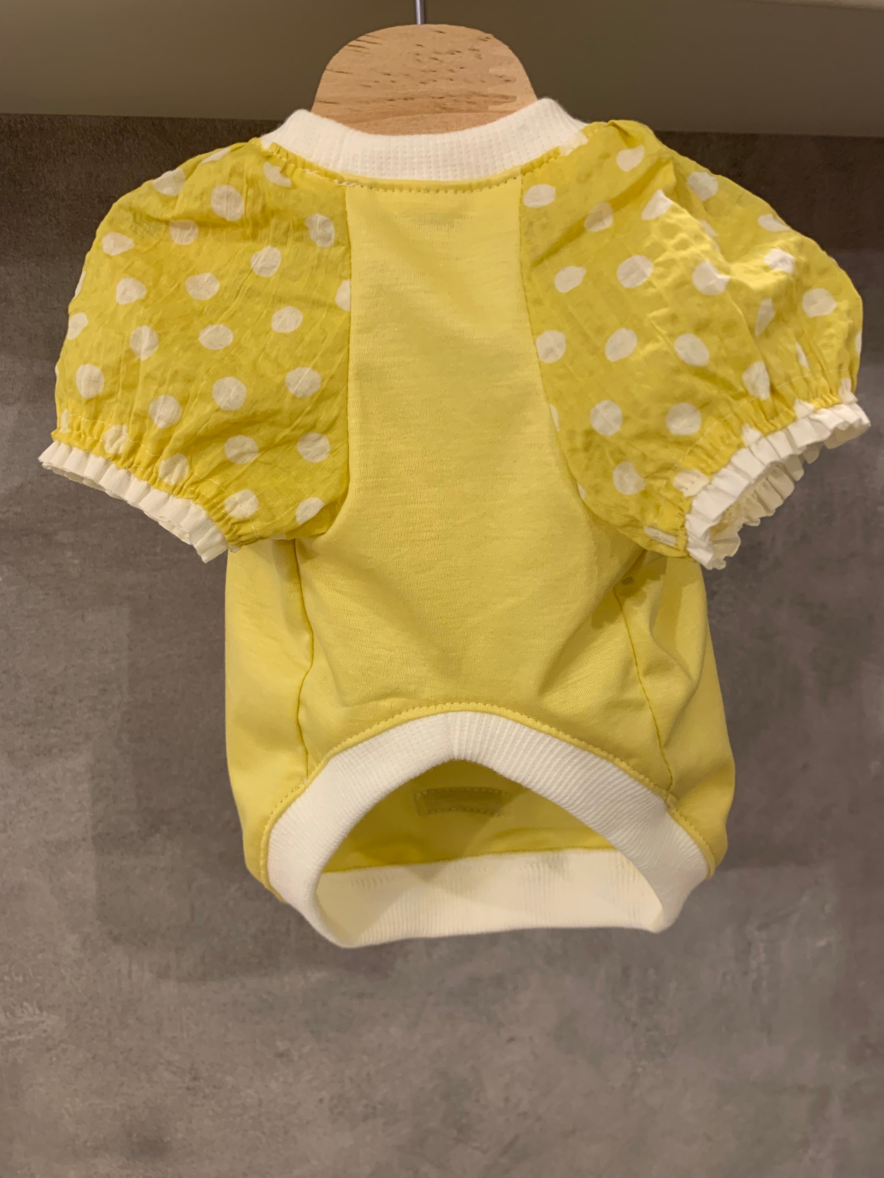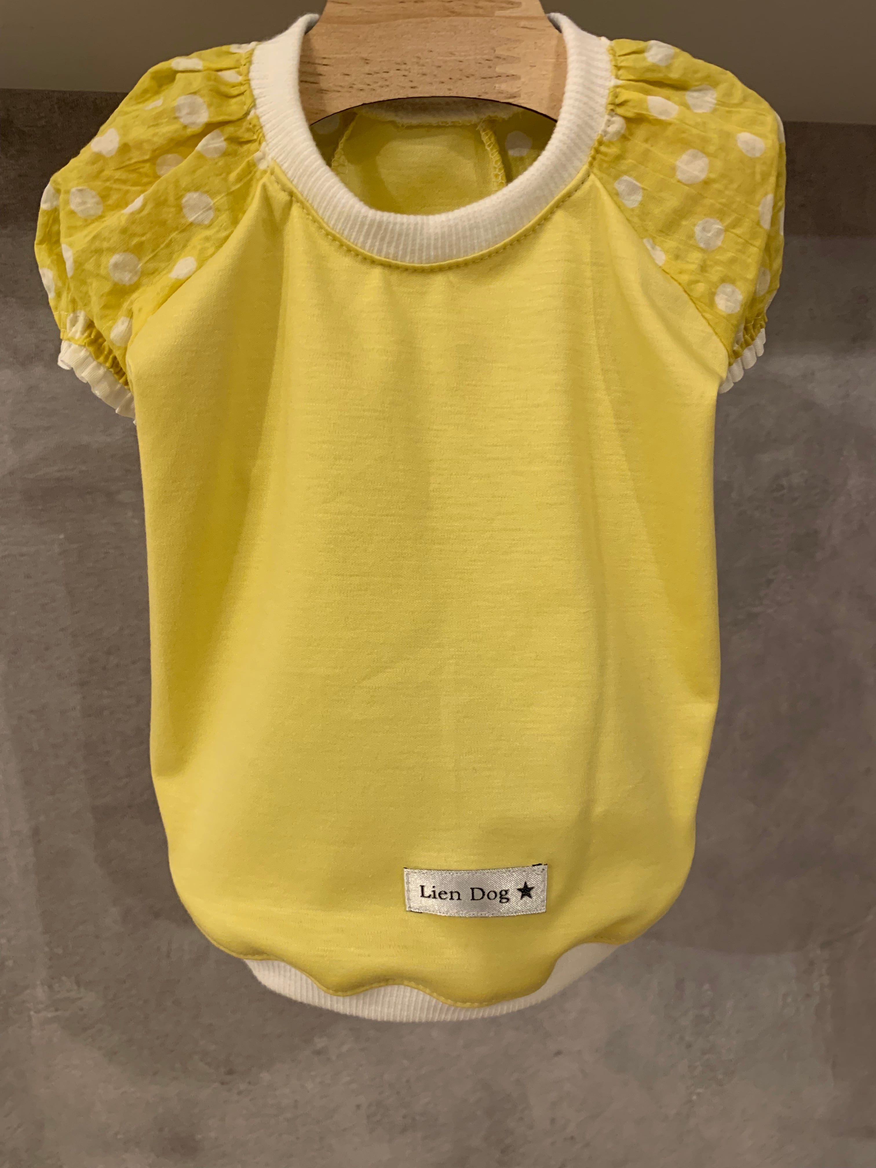 優しいイエローのTシャツ生地で、サラッととした着心地。お袖はリップル生地で涼しく着れます。