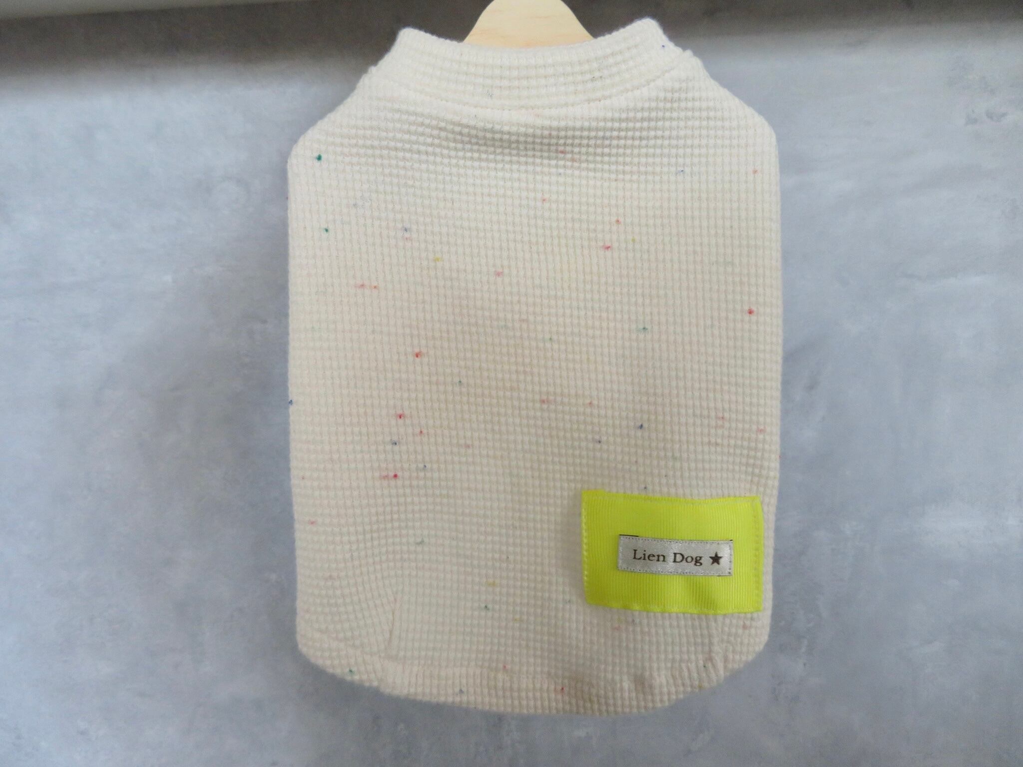 春らしいお色がちらちら入ったネップワッフル生地のカットソーにネオンカラーのタグがついてる可愛いカットソー。