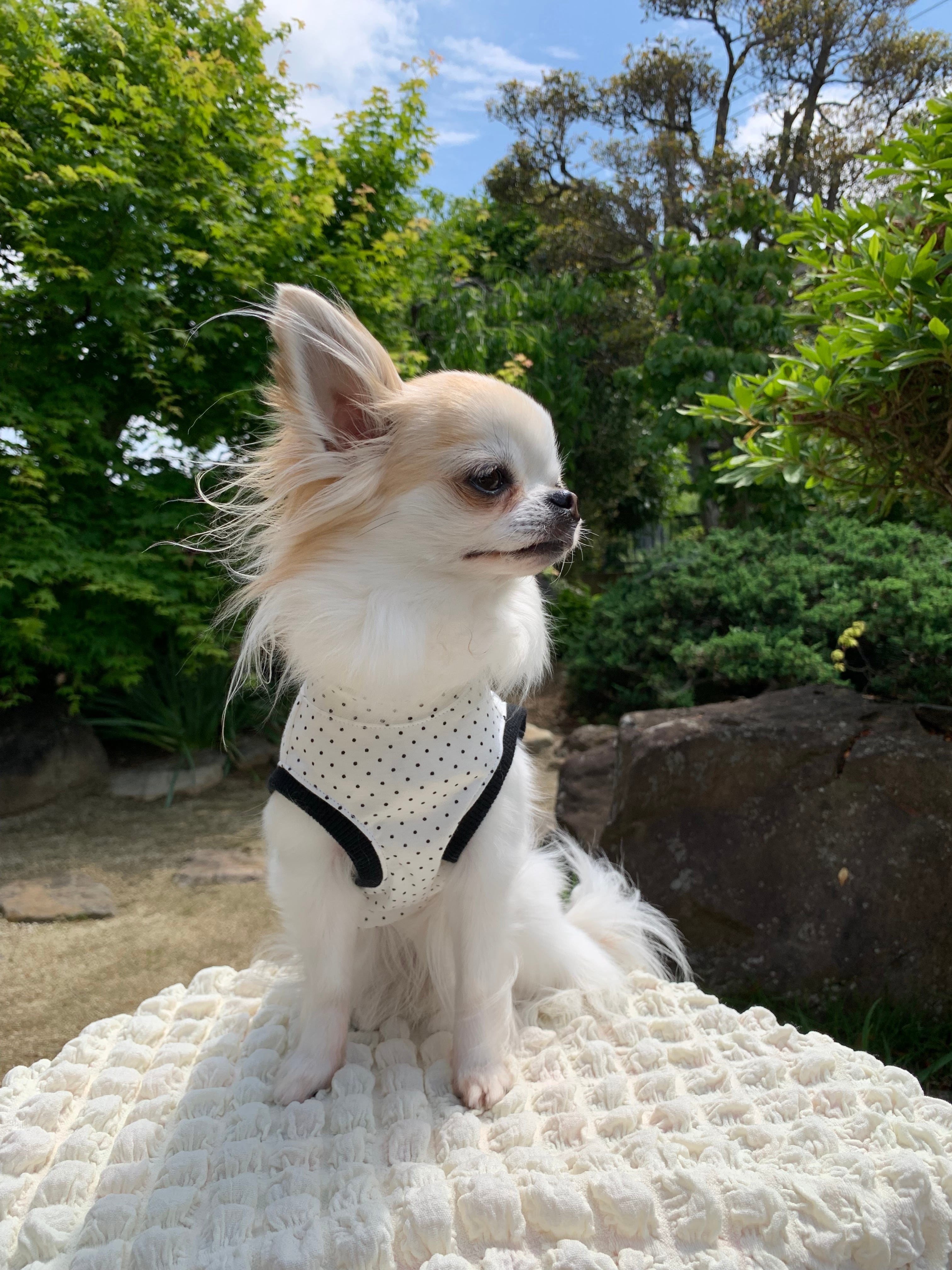 お好みに合わせて、わんちゃんのヌードサイズにプラス1〜3センチくらいを目安になさってください。