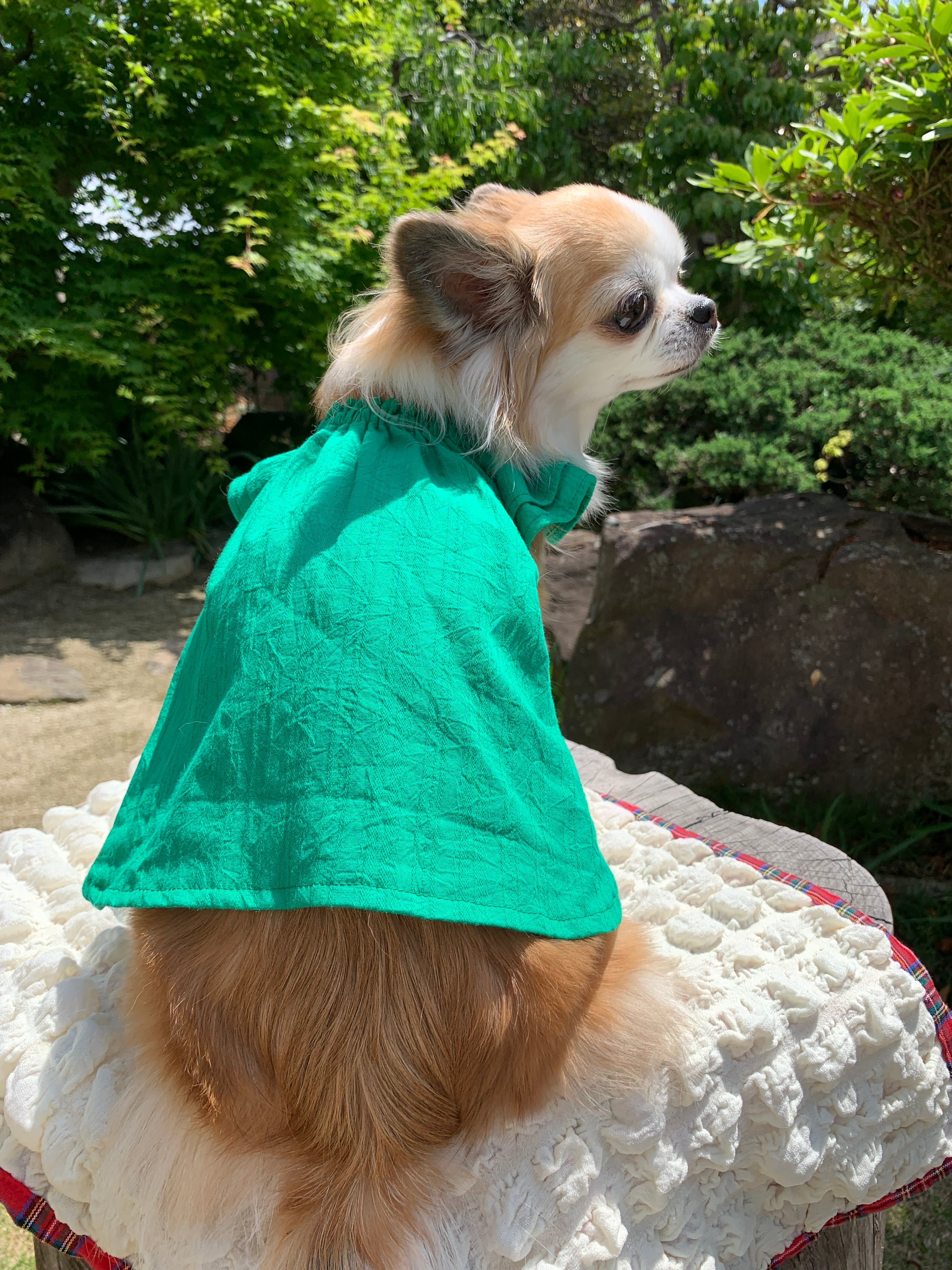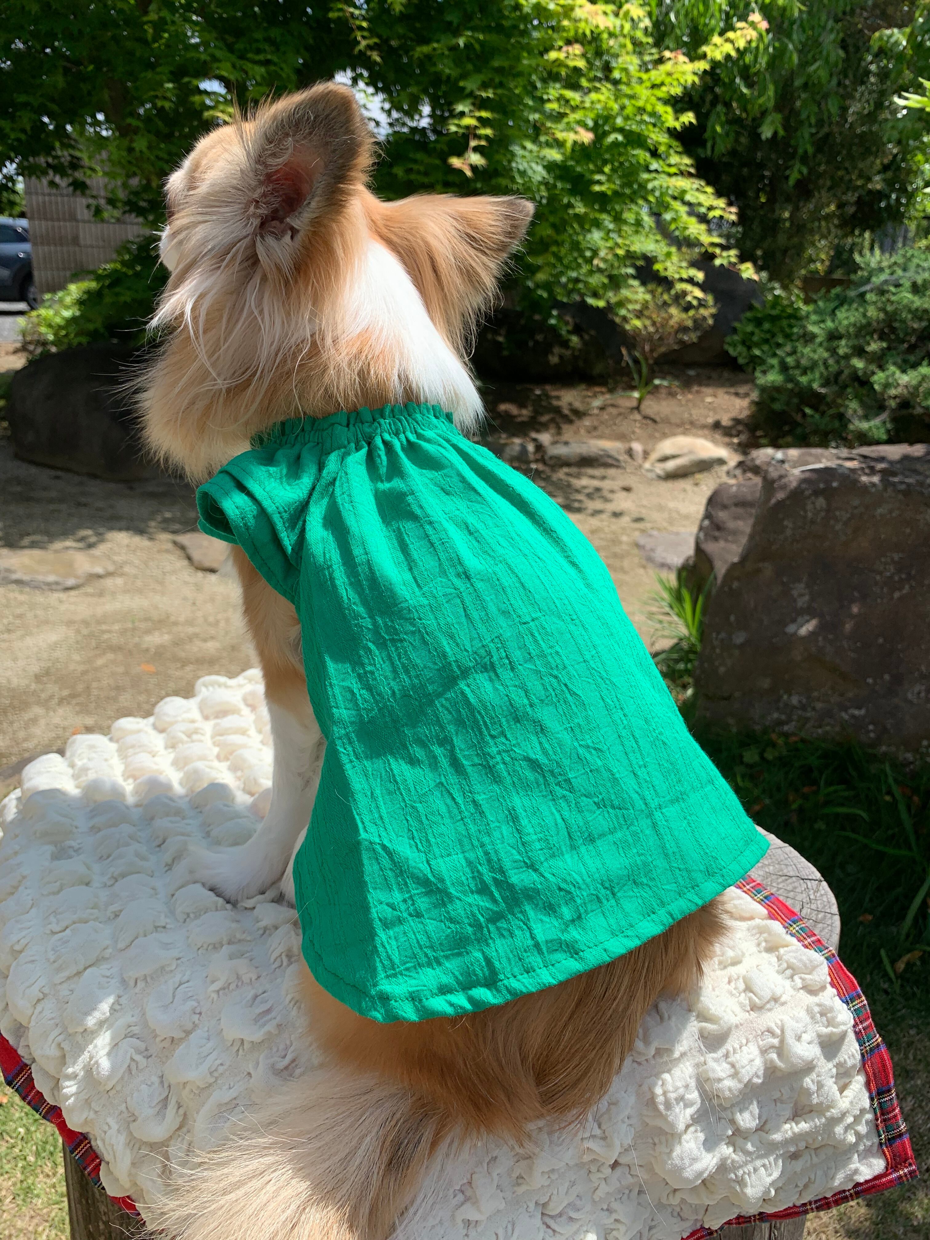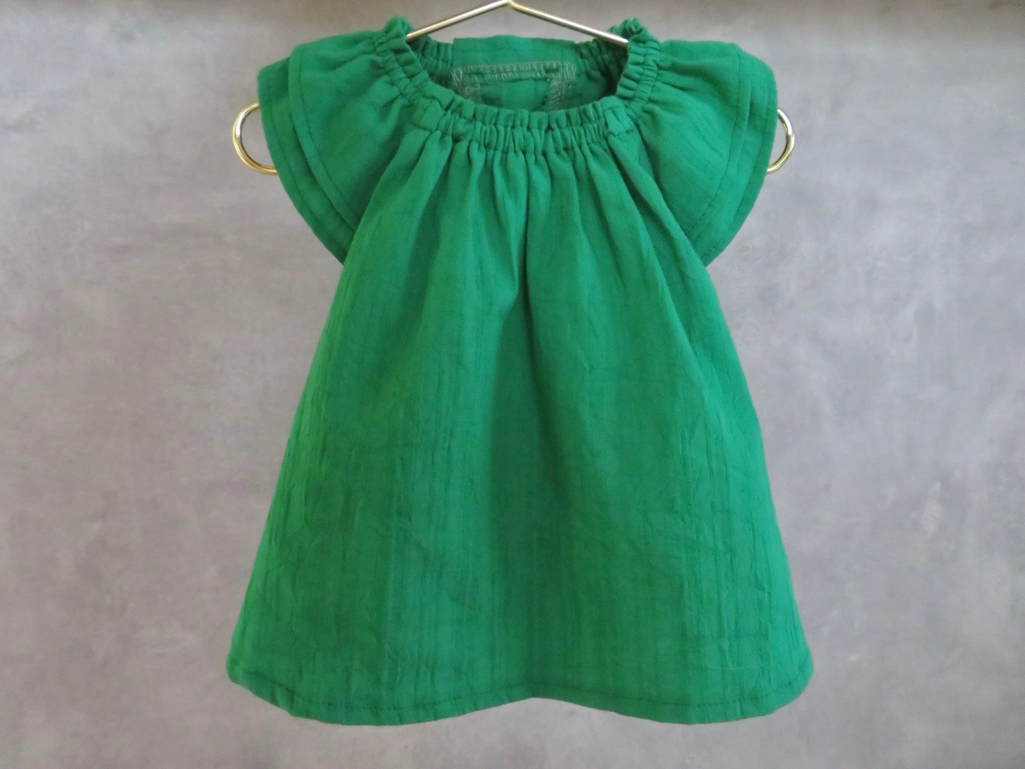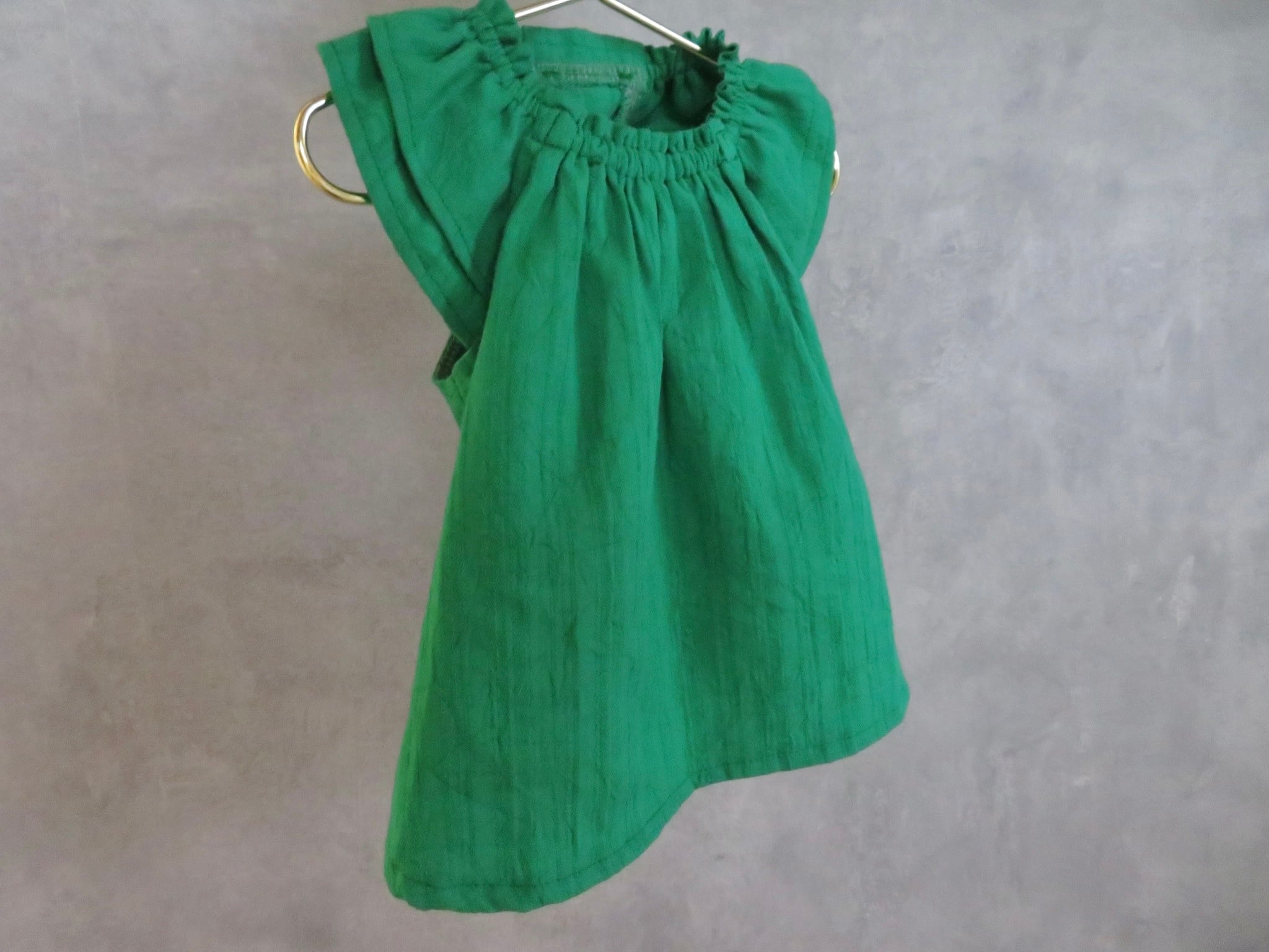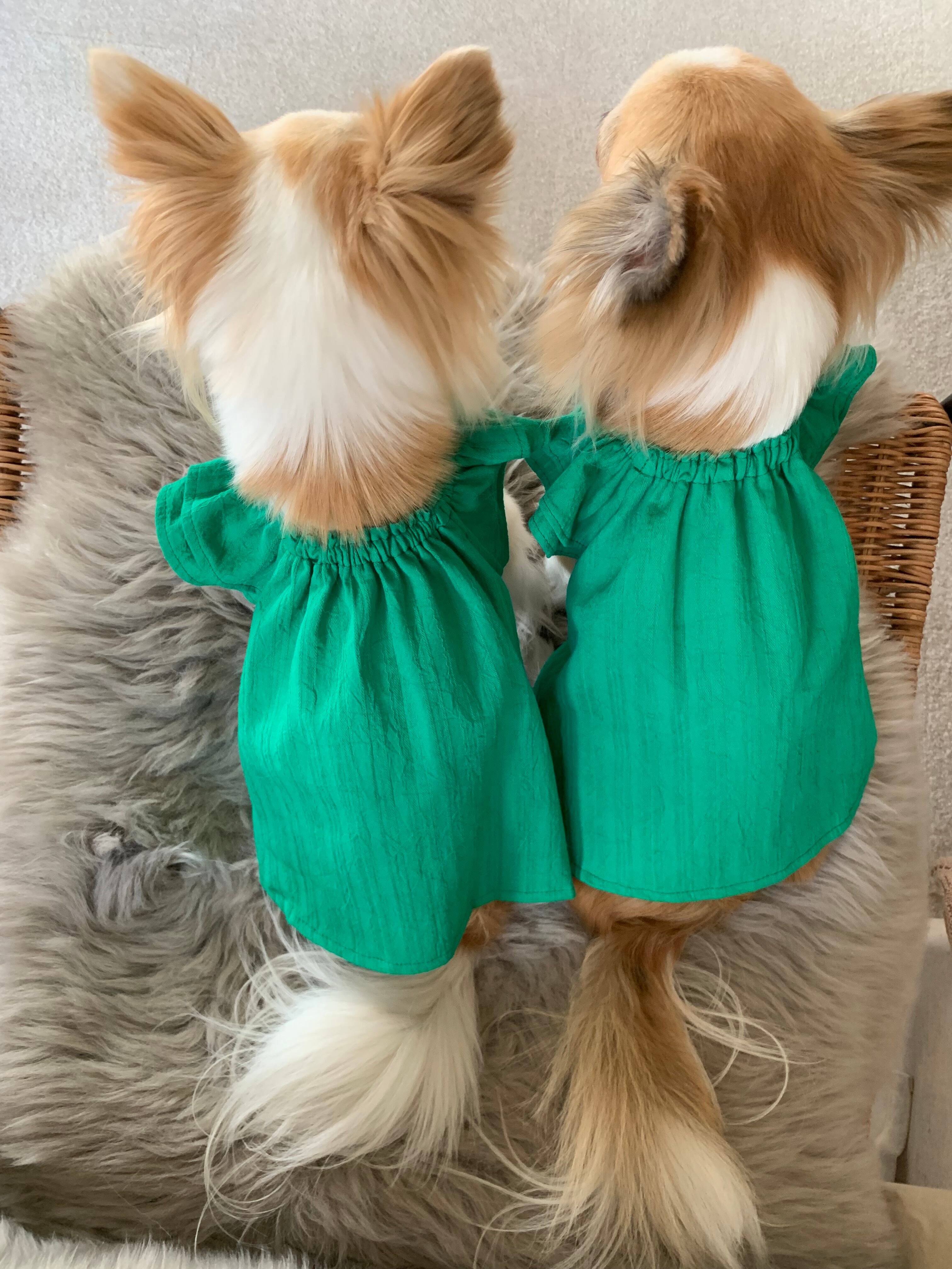 綺麗なグリーンのワッシャー加工のドビー生地で、とっても可愛いお洋服♡