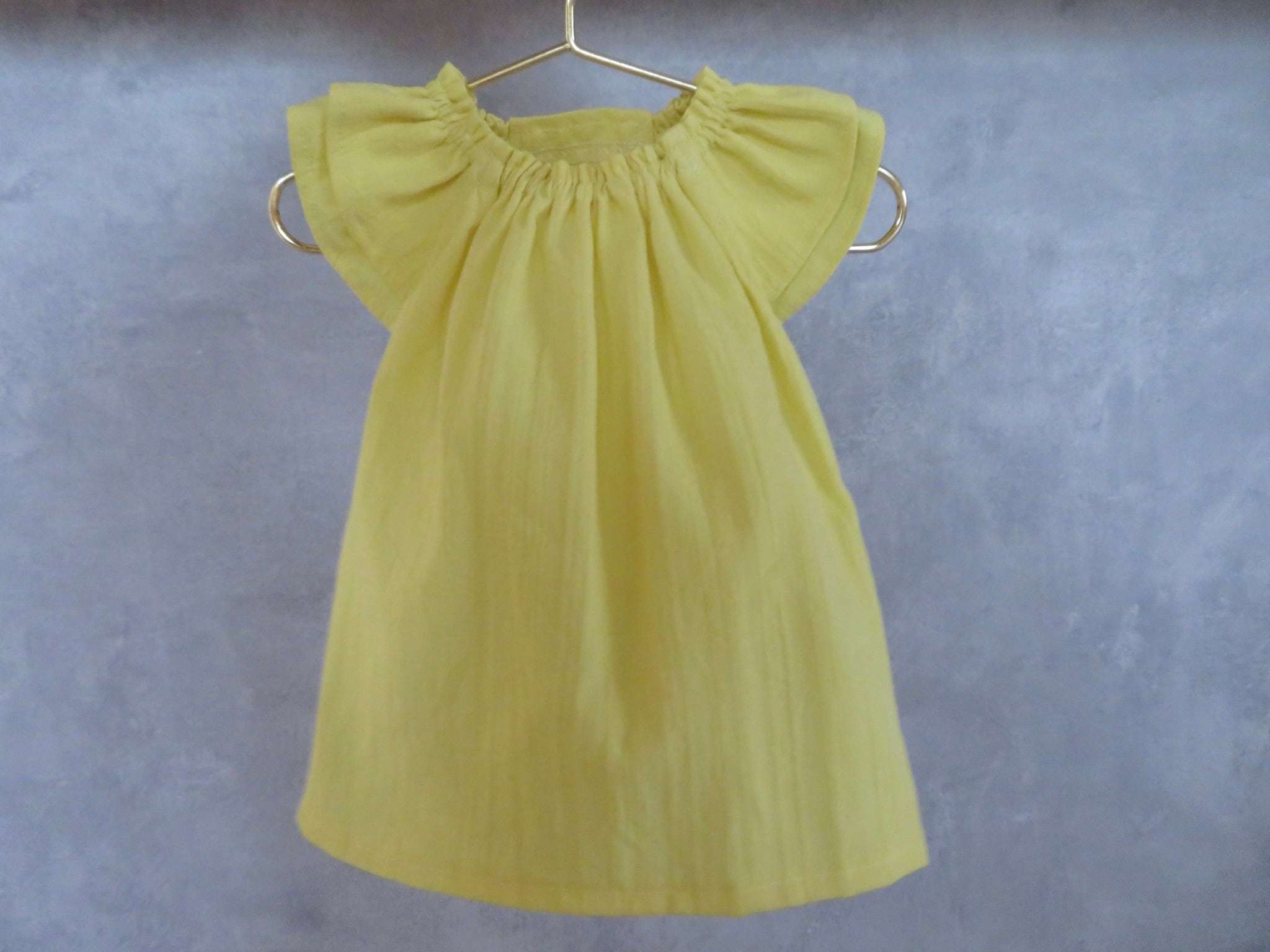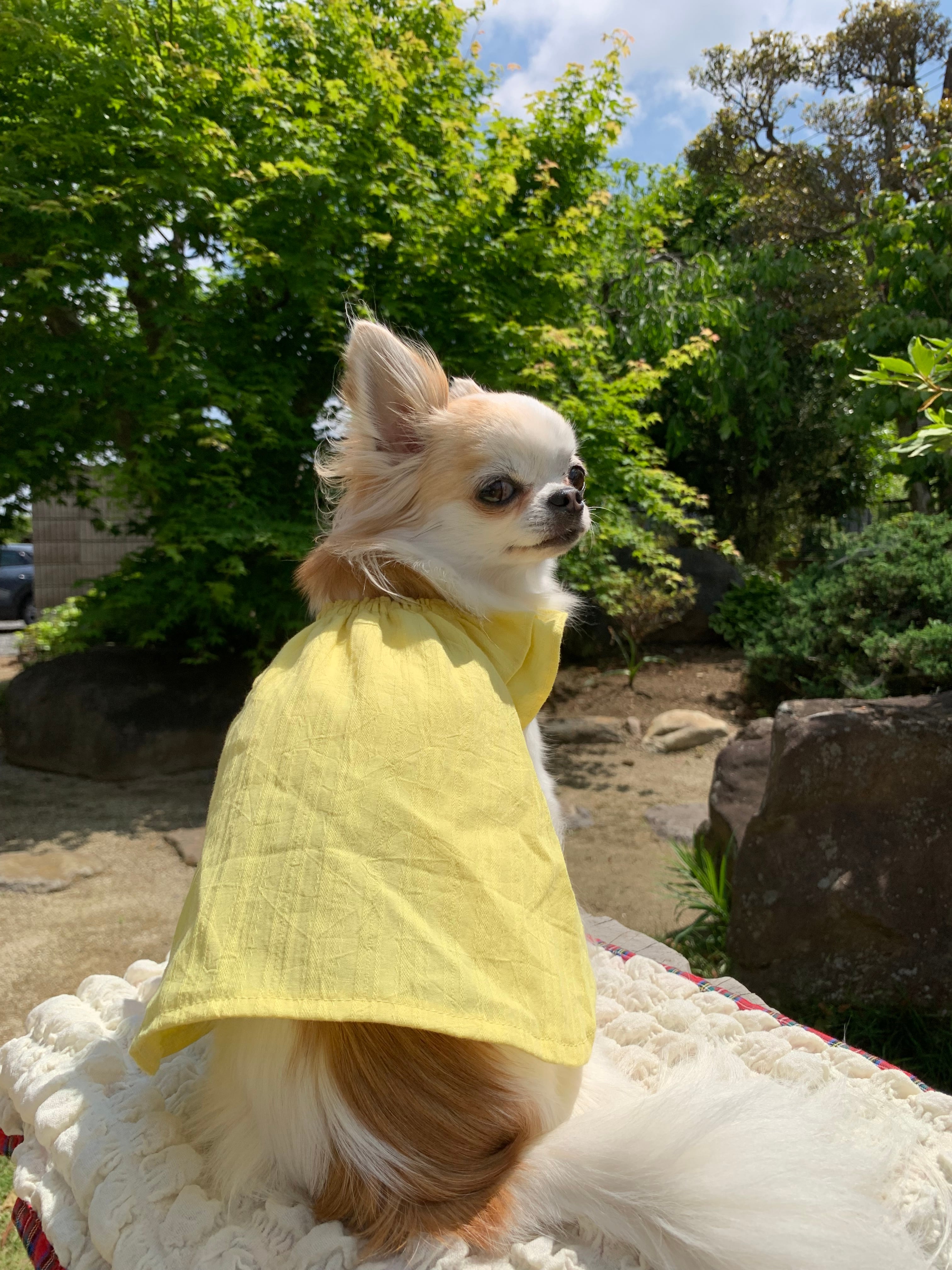 可愛いイエローのワッシャー加工のドビー生地で、とっても可愛いお洋服♡