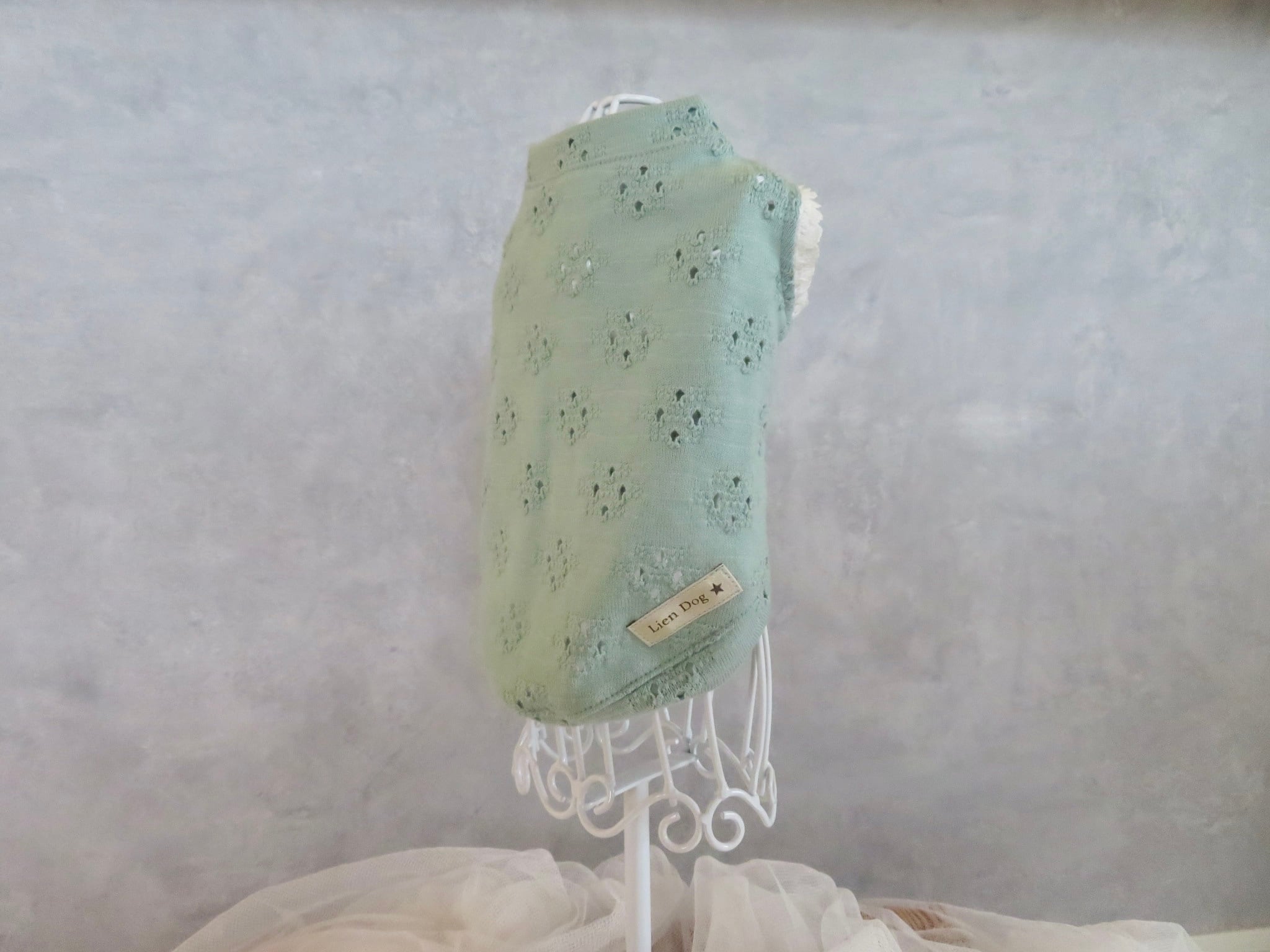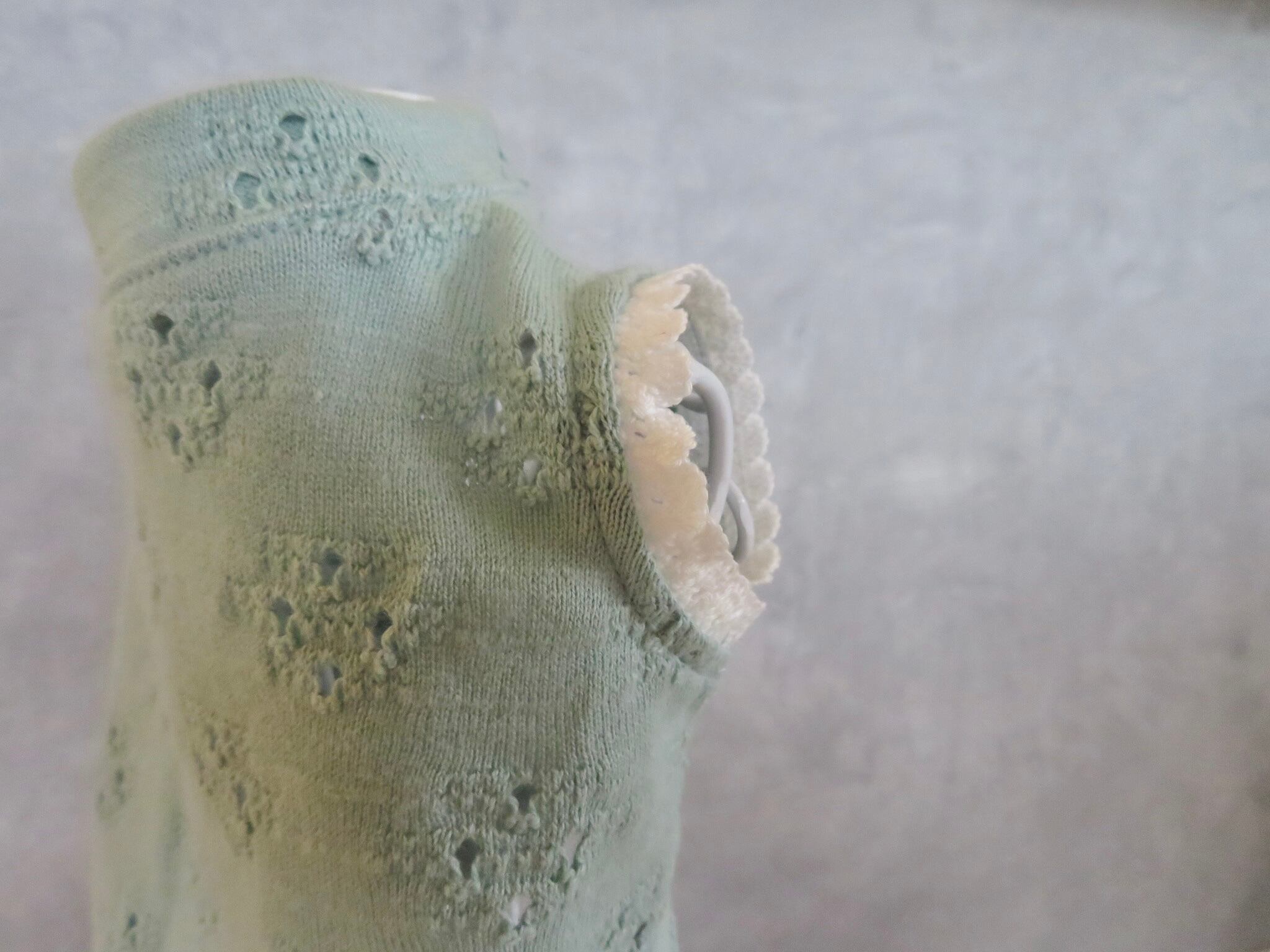 ロイヤルミントグリーンレースニットノースリーブ②