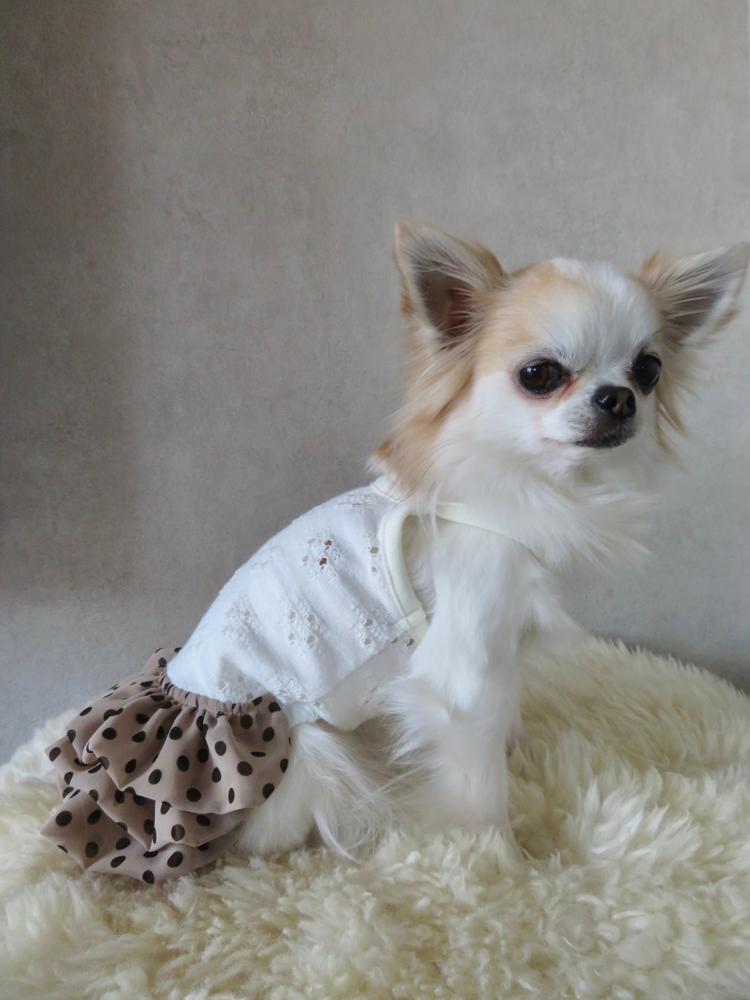 モデルきゅうちゃんは2.3キロでSサイズ着用。